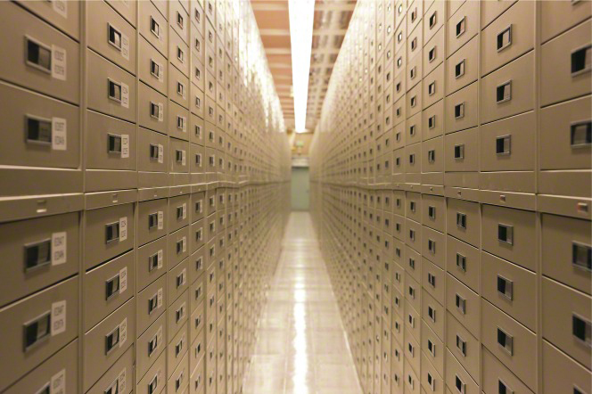 최대 14톤에 달하는 거대한 문 뒤에는 역사적으로 귀중한 보물들이 보관되어 있다. 100개국 이상에서 수집한 약 35억장의 기록 이미지가 담긴 마이크로필름과 마이크로피시가 바로 그것이다.